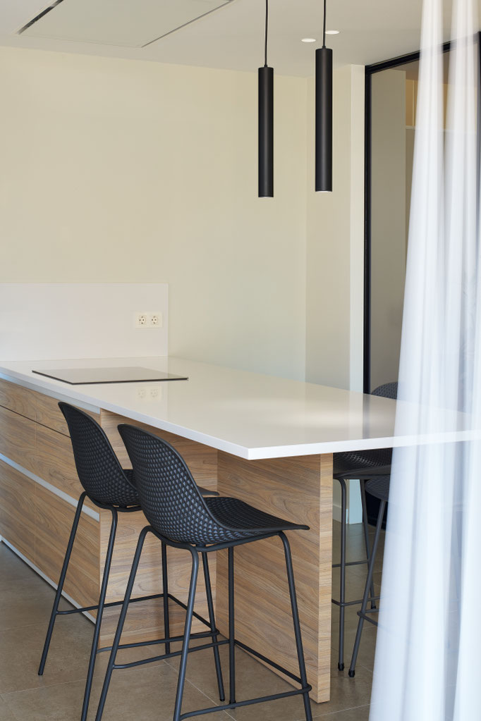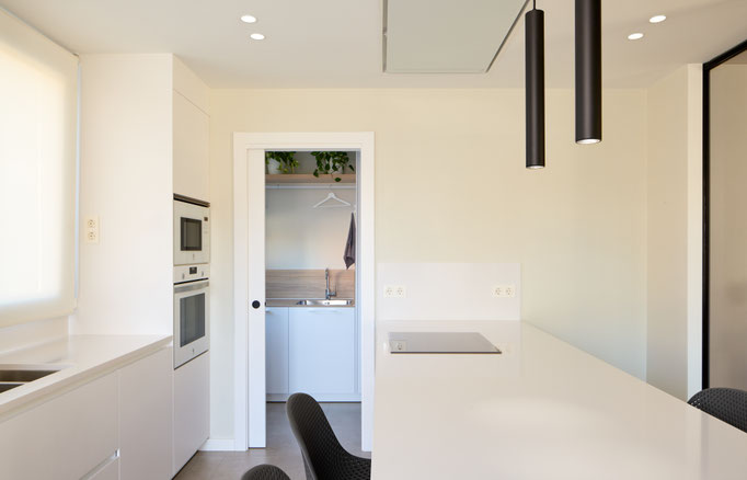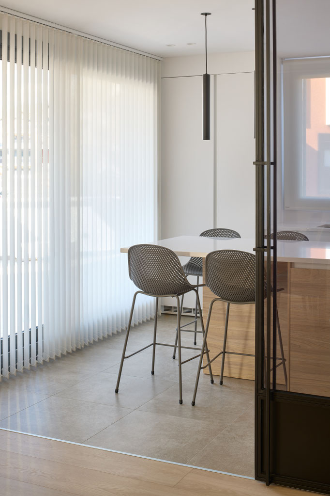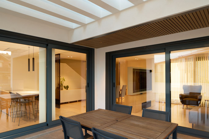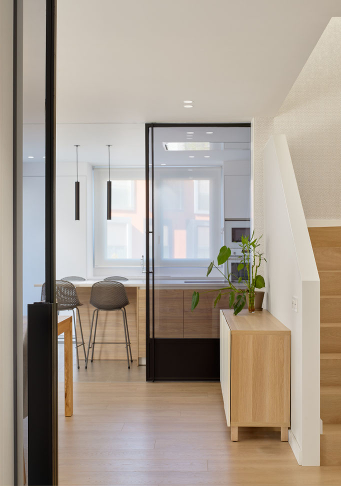 A més de crear aquestes zones exteriors, la reducció de la volumetria també ha contribuït a mantenir una distància raonable entre la casa i els edificis veïns. Això permet preservar la intimitat i reduir possibles molèsties causades per la proximitat amb altres propietats. A través d'aquesta disposició, s'ha aconseguit un equilibri entre la necessitat de privacitat i la integració en l'entorn urbà.