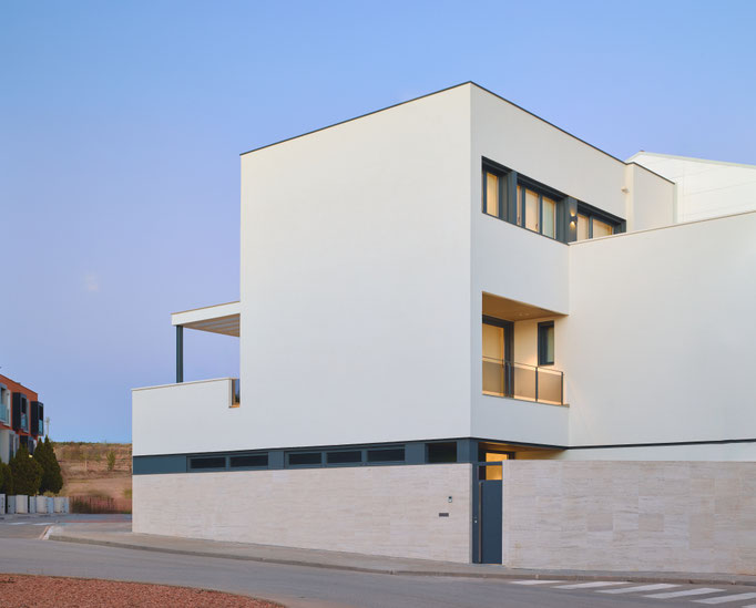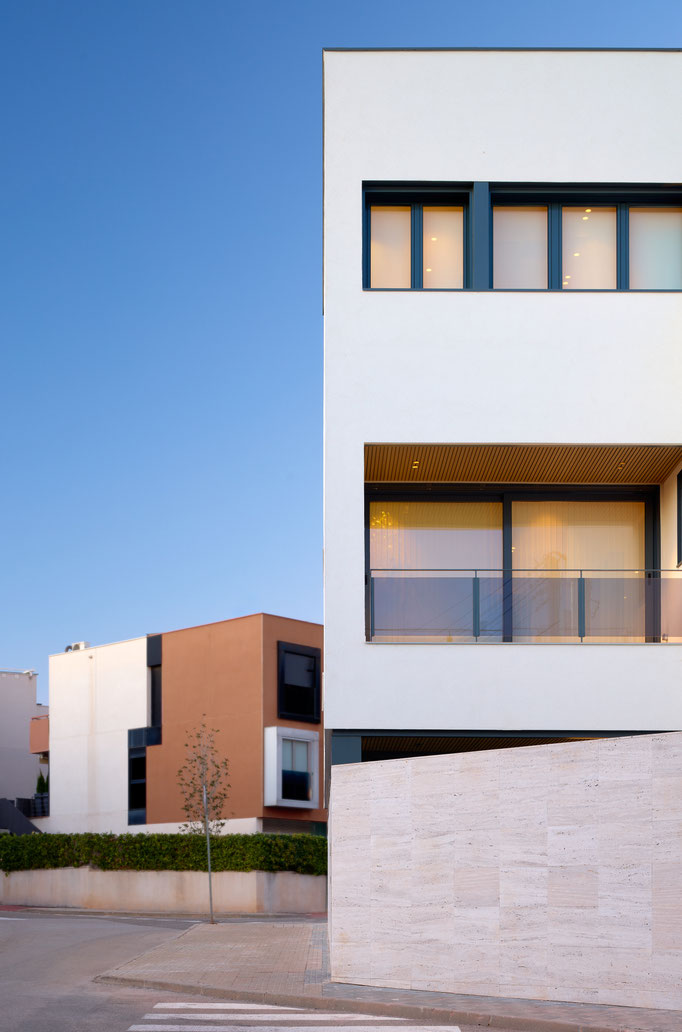 La casa unifamiliar en testera es caracteritza per un gran esforç volumètric que ha estat realitzat amb l'objectiu de garantir la màxima privacitat als seus habitants. Malgrat haver perdut part de la volumetria permès pel planejament urbanístic, aquesta decisió ha permès crear espais exteriors com un pati i terrasses, així com mantenir una distància considerable amb els edificis veïns.